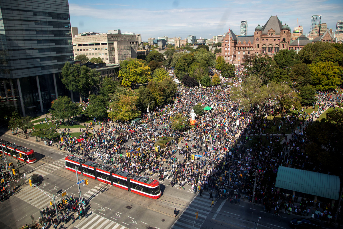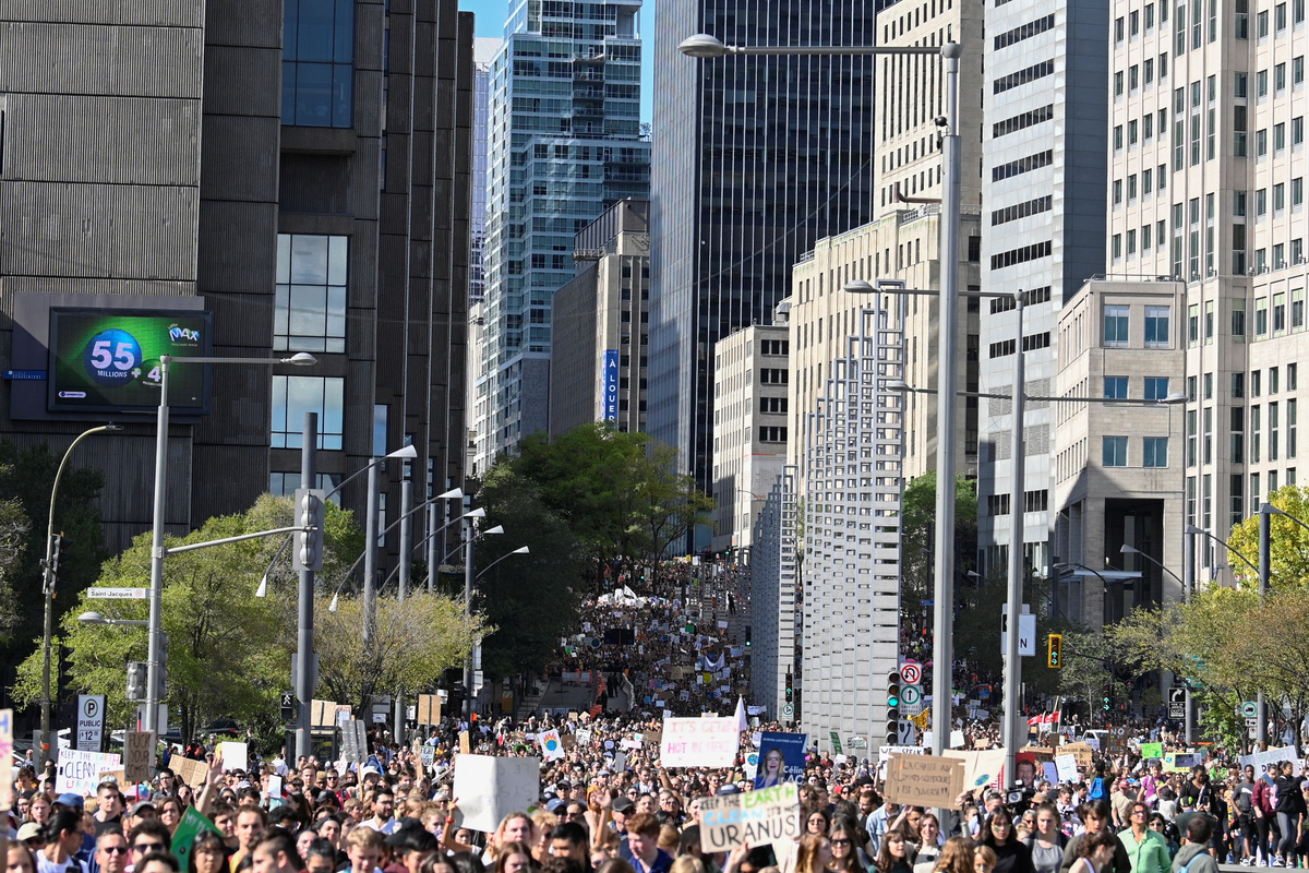 "Today we are millions around the world, striking and marching again, and we will keep on doing it until they listen," Thurnberg told a crowd that organizers estimated to be about half a million people in the Canadian city.