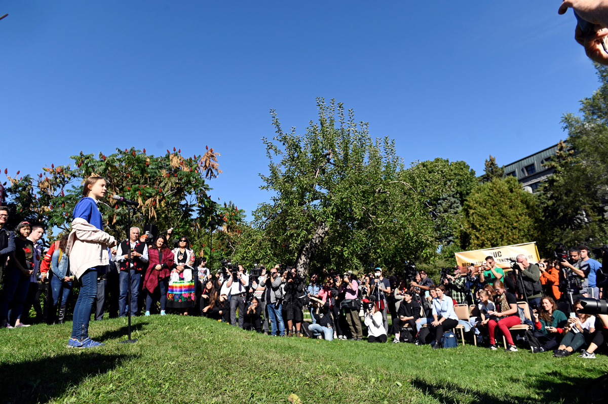 Thunberg's presence in Canada coincides with campaigning ahead of an Oct. 21 federal election. She met with Prime Minister Justin Trudeau privately for about 15 minutes in his capacity as a leader of the government not the Liberal Party.