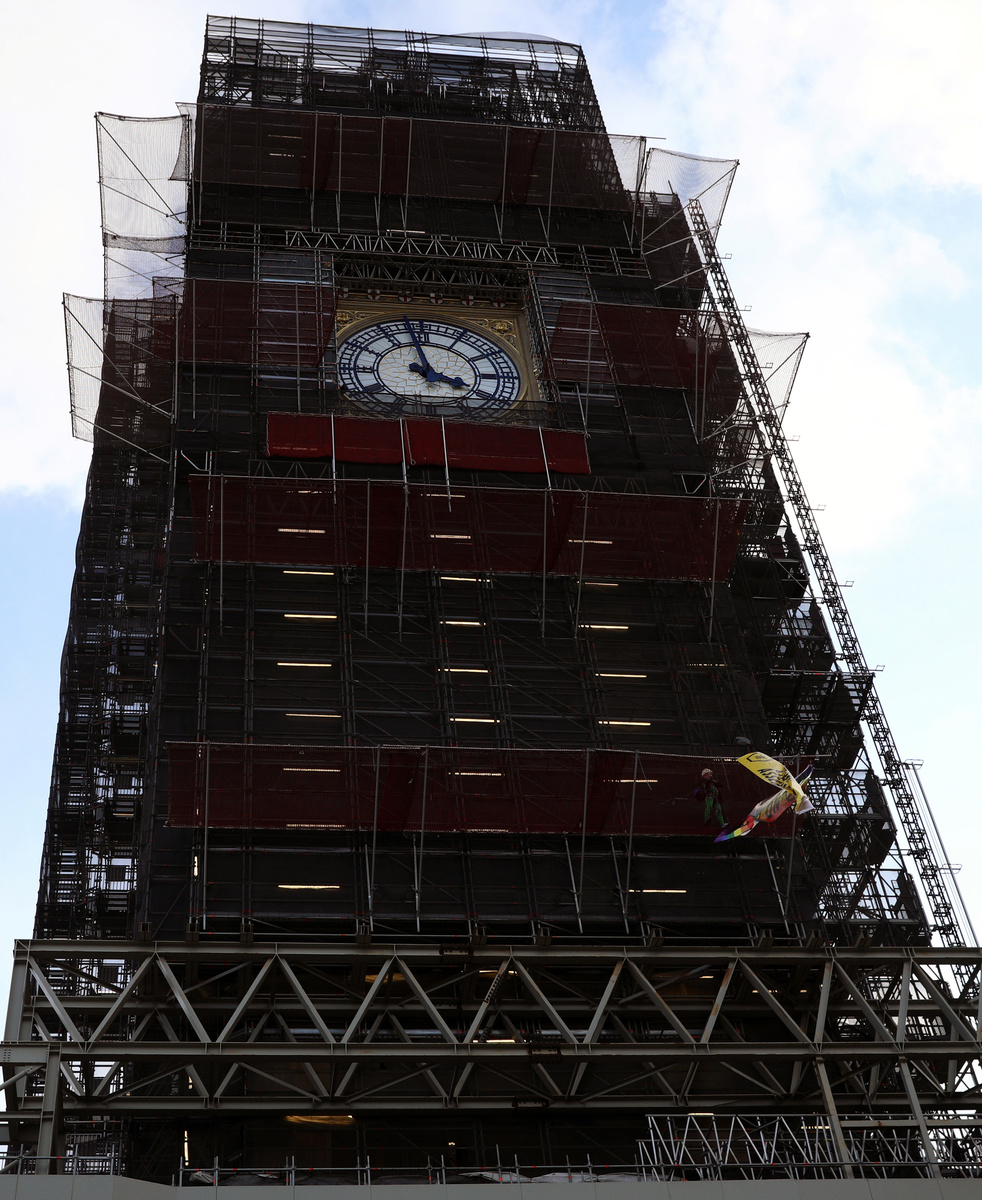 LONDON (Reuters) - A climate-change protester climbed scaffolding around London's Big Ben tower at parliament on Friday, as nearly two weeks of action from the Extinction Rebellion group draws to a close.