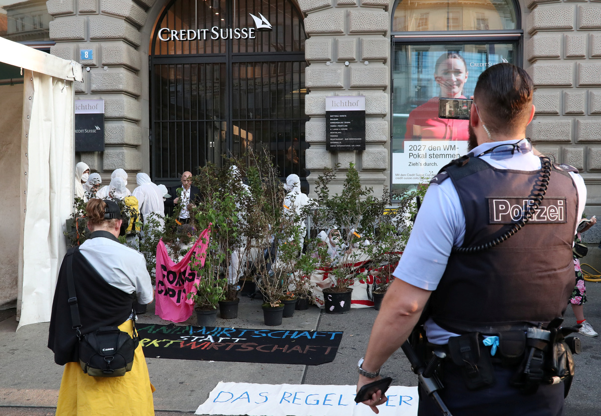 Zurich police said on Twitter they had arrested around two dozen protesters before midday, with more due to be removed from bank entrances.