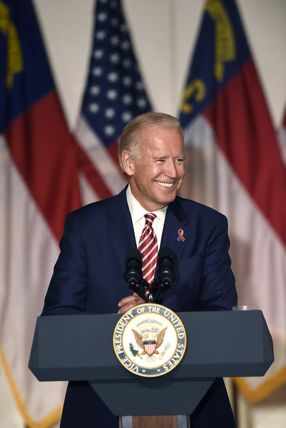 Biden landed at about 10:20 a.m. and made a surprise appearance at a Clinton campaign office. He began speaking at 11:30 a.m. to an invitation-only audience at Central Piedmont Community College.