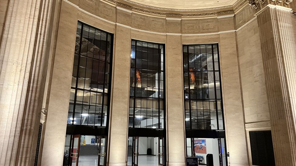 The entrance at Clinton and Jackson Boulevard has long been equipped with automatic doors and a ramp into the Great Hall, Magliari said.