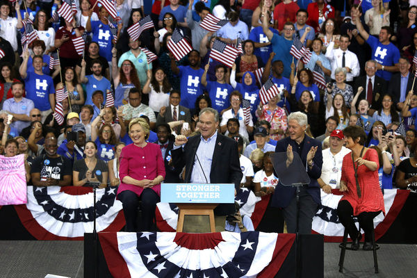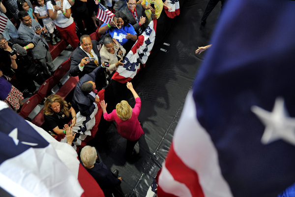 The rally followed the four-day Democratic National Convention in Philadelphia, where her campaign highlighted support not just from party luminaries like President Barack Obama, but also a retired four-star general, lifelong Republicans disillusioned by Trump, family members of those lost to gun violence, and immigrants and Muslims who denounced Trump's rhetoric and policy proposals.