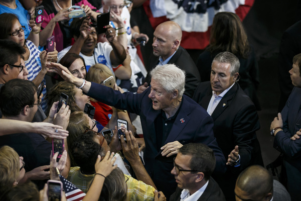 After the rally, Clinton was to continue a bus tour with vice presidential nominee Tim Kaine through Pennsylvania and Ohio, states Obama carried twice but ones that Trump hopes to flip to the Republican side with his populist message.