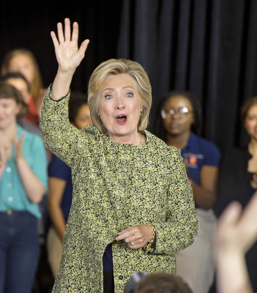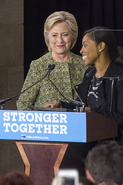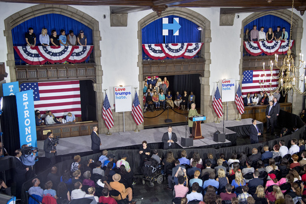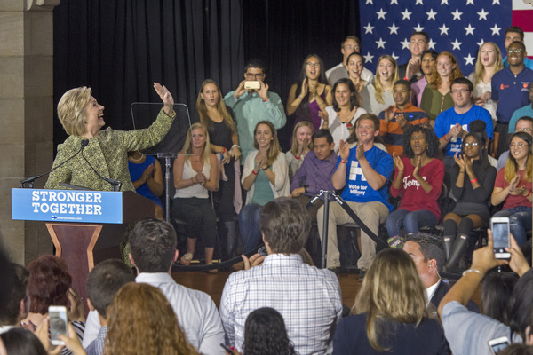 Clinton told the crowd of about 200 at Mitten Hall that she has a plan that would offer debt-free public college for everyone, apprentice programs for those who opt to not go to college, and high-quality child care for every family.