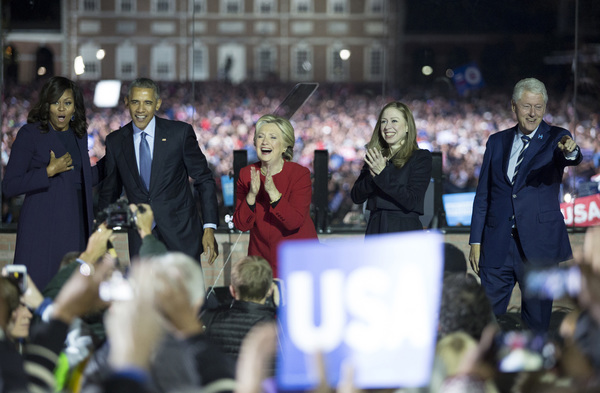Clinton asked the crowd to think ahead to Jan. 20, 2017, when the next president is sworn into office, and what kind of country it will be.