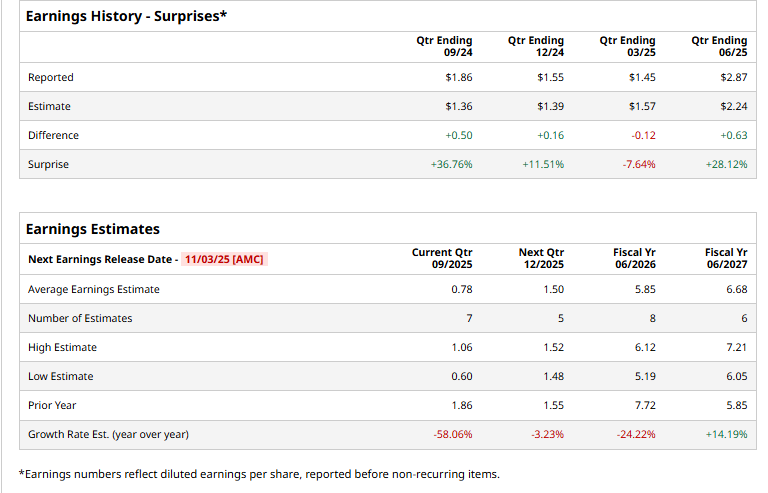 For fiscal 2026, its EPS is expected to come in at $5.85, falling 24.2% from $7.72 in fiscal 2025. But in fiscal 2027, its earnings are expected to rise 14.2% year over year to $6.68 per share.