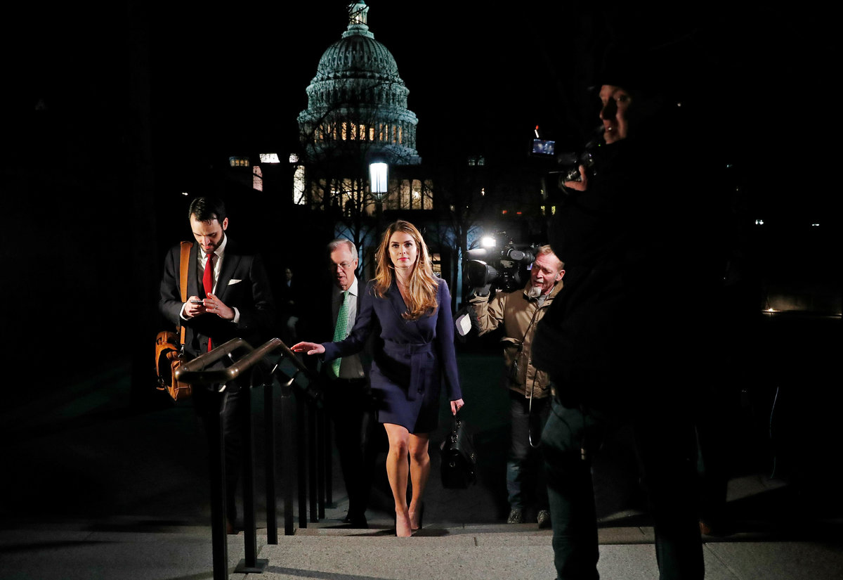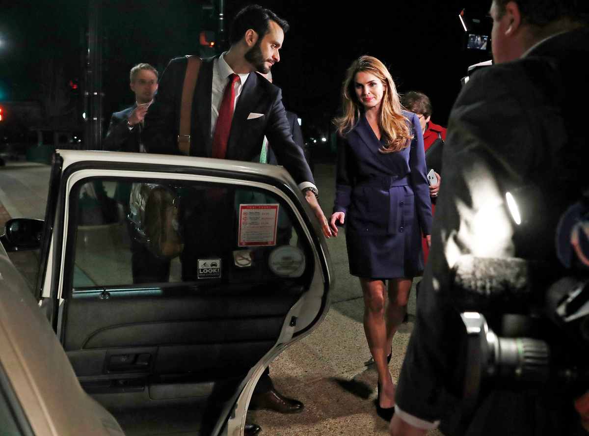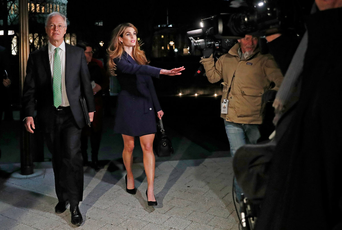 Hicks arrived about 10 a.m. for a closed-door session with the panel. She left around 7 p.m. The committee is investigating allegations that Russia sought to interfere in 2016 to boost Trump, and whether his associates colluded with Russia.
