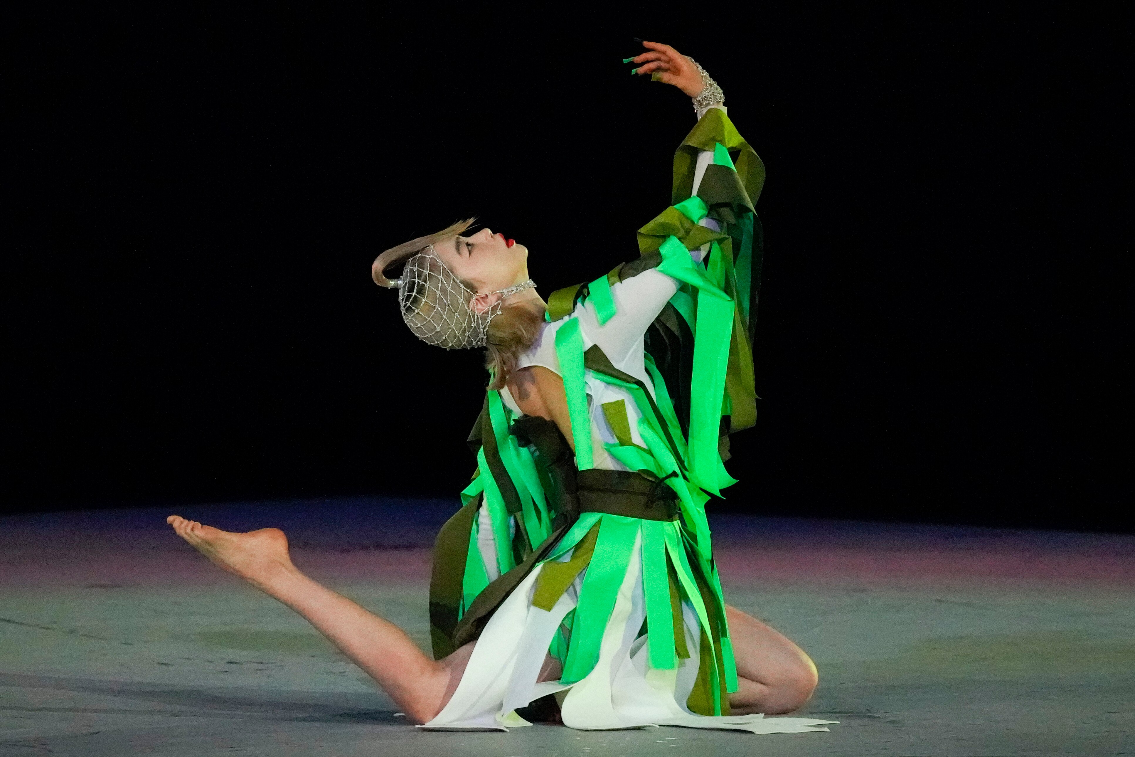 "The costume design recalls trees of precious wood species which have stood witness to history. Even if the outer layer is no longer alive, the trunk continues to live on and strengthen its centuries-old connection to the earth and land in which its roots stretch deep."