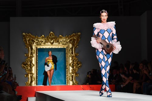 That’s not to say that all sophistication is lost within the aesthetic: Oversized accessories and harlequin-inspired prints tap into the whimsical aspect of clowncore without becoming a full-on costume. According to Camposarcone, colors and patterns aren’t even needed to harness the trend — look to Japanese street style and you’ll find tonal, exaggerated silhouettes reminiscent of those found in carnivals. Look to indie brands Molly Goddard and Tyler McGillivary for eccentric prints and enlarged collars. And if you’re like Camposarcone, look to couture shows from Christian Dior or Moschino, where you’ll find drawn-on pouty lips and oversized, trailing ruffles.
