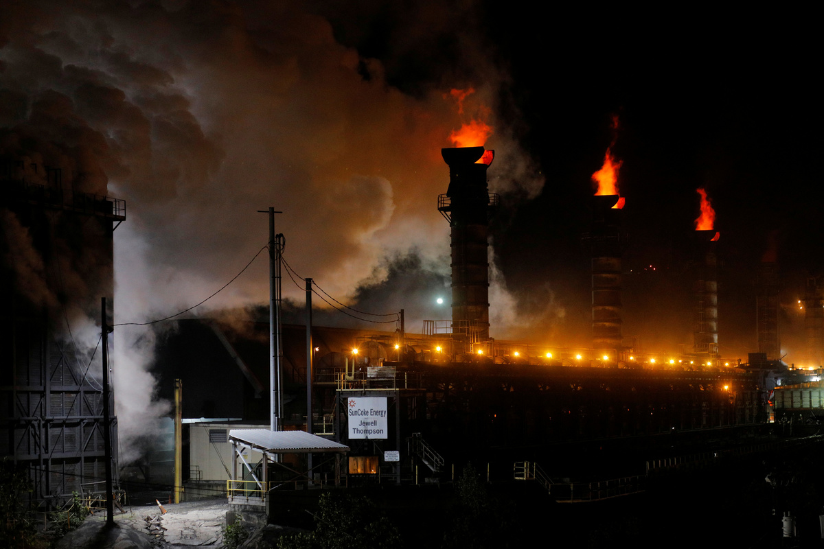 FILE PHOTO: Flames and steam rise from the Suncoke Jewell cokemaking plant, which burns coal to make coke, in Oakwood, Virginia, U.S., May 19, 2018. Picture taken May 19, 2018. REUTERS/Brian Snyder