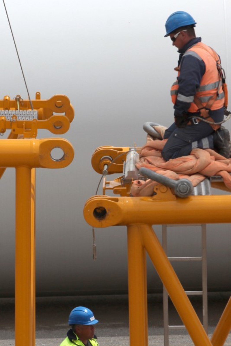 At Kosovo's first wind farm, a total of nine 110 meter General Electric turbines will begin whirring in September and are expected to cover 3 percent of its demand.