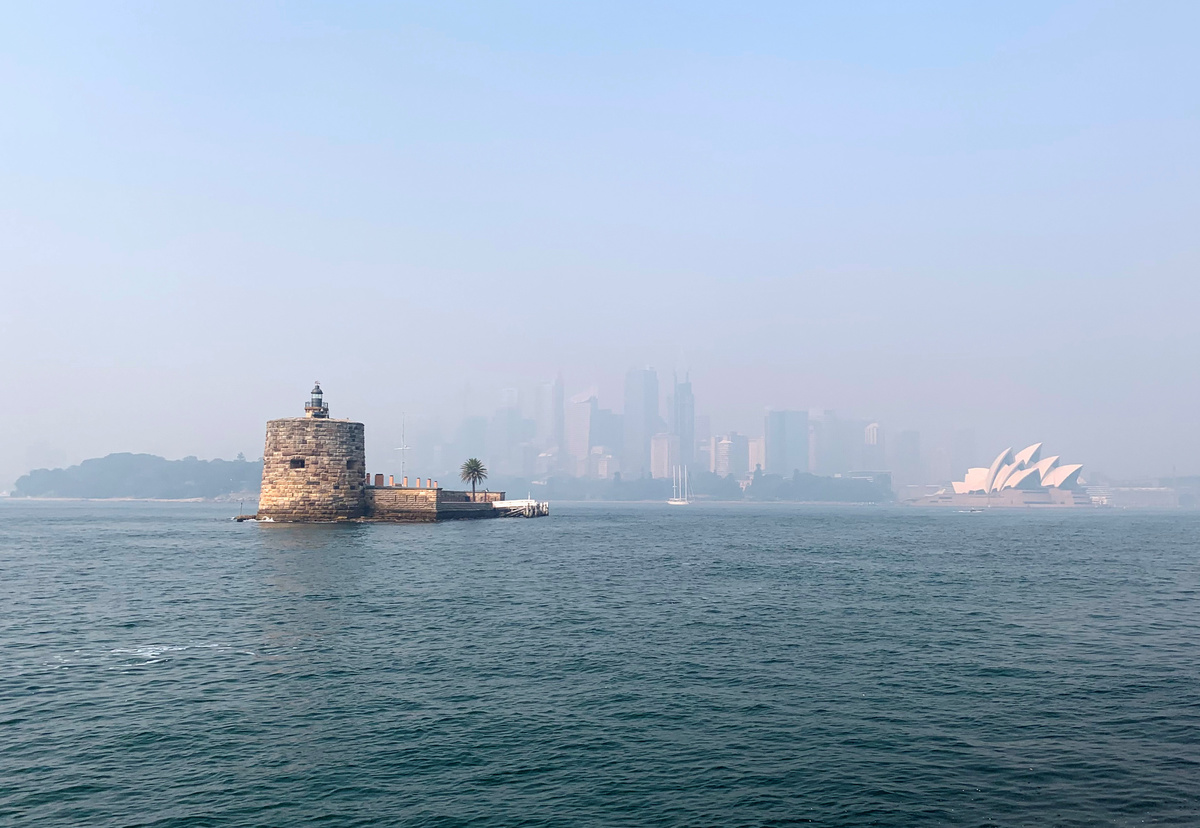 In the state of New South Wales, strong winds blew smoke from 60 fires still burning over much of Sydney, shrouding the harbour city and its famous landmarks in thick smog.