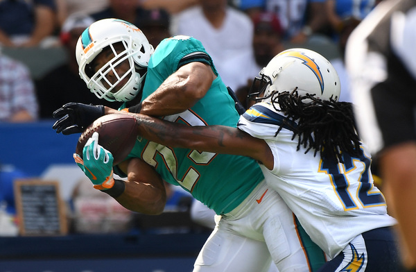 The Chargers took a 10-3 lead into the locker room at halftime, and tempers flared as the teams exited the field through the same tunnel, a rarity in the NFL. The hostility stemmed from wide receiver DeVante Parker getting hit in the knees by safety Jahleel Addae a few plays earlier. The team went at it briefly in the tunnel before heading to their respective locker rooms.