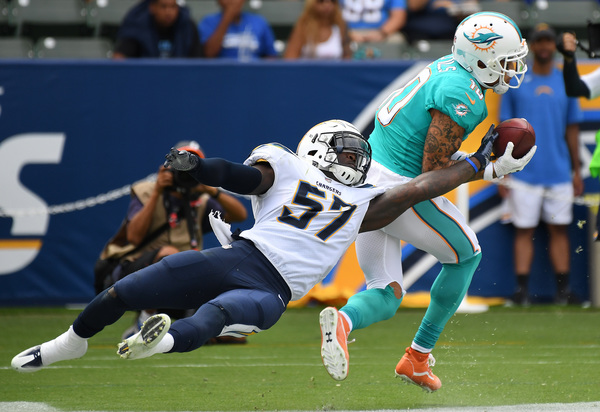 The Dolphins had a chance to tie the game at 17 in the third quarter. But Cutler overthrew an open Jarvis Landry in the end zone on second down, and then Chargers defensive end Melvin Ingram beat left tackle Laremy Tunsil and sacked Cutler on third down. The Dolphins had to settle for a 28-yard field goal by Parkey to cut their deficit to 17-13.