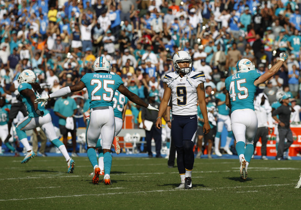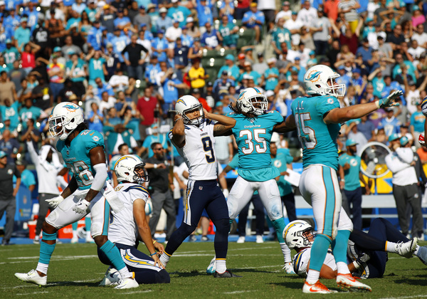 Of course, the Dolphins had to sweat it out. Chargers quarterback Philip Rivers drove his team down the field before rookie kicker Younghoe Koo missed a 44-yard field goal attempt with five seconds left.