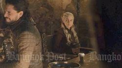 With two episodes of HBO's wildly popular "Game of Thrones" to go, puzzled fans took to social media on Monday after Daenerys Targaryen was joined at a wooden banquet table by a rogue coffee cup.