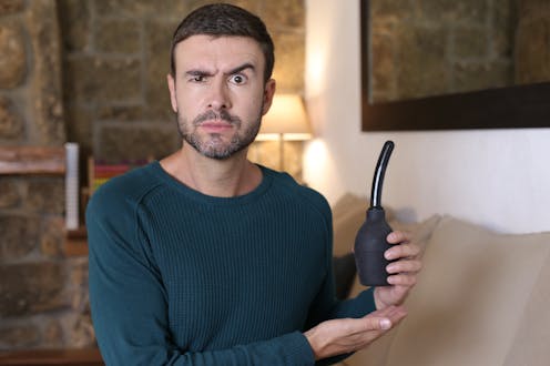 An enema clears the bowel of faecal matter. Usually, the procedure involves inserting a nozzle attached to a pouch containing fluid into the rectum so the liquid can be squeezed in. In conventional medicine, enemas are used to clear the bowel before surgery, for severe cases of constipation or sometimes as part of a bowel management scheme – in people with inflammatory bowel diseases, for example.