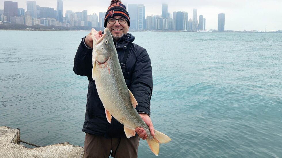 “Today I got lucky and got a trifecta fishing from shore,” Arellano, also known online as “Jesus 312 Fishing,” emailed. “I got a [lake trout], brown trout and coho. The brown and coho were caught with a Mepps Flying C and the laker was caught with a pink Rooster Tail.