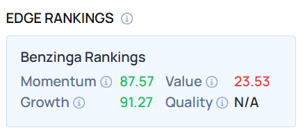 As of this writing, COIN ranked high on growth, an indicator of a stock's combined historical expansion in earnings and revenue across multiple periods. Visit Benzinga Edge Stock Rankings to see how it compares to other cryptocurrency-linked stocks