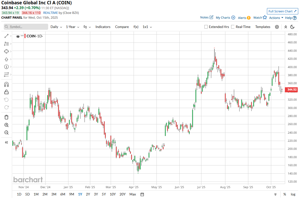 Over the past year, COIN has stood out, up 75.52% over 52 weeks and 38.79% year-to-date (YTD), showing solid investor confidence tied to strategic moves and deals.