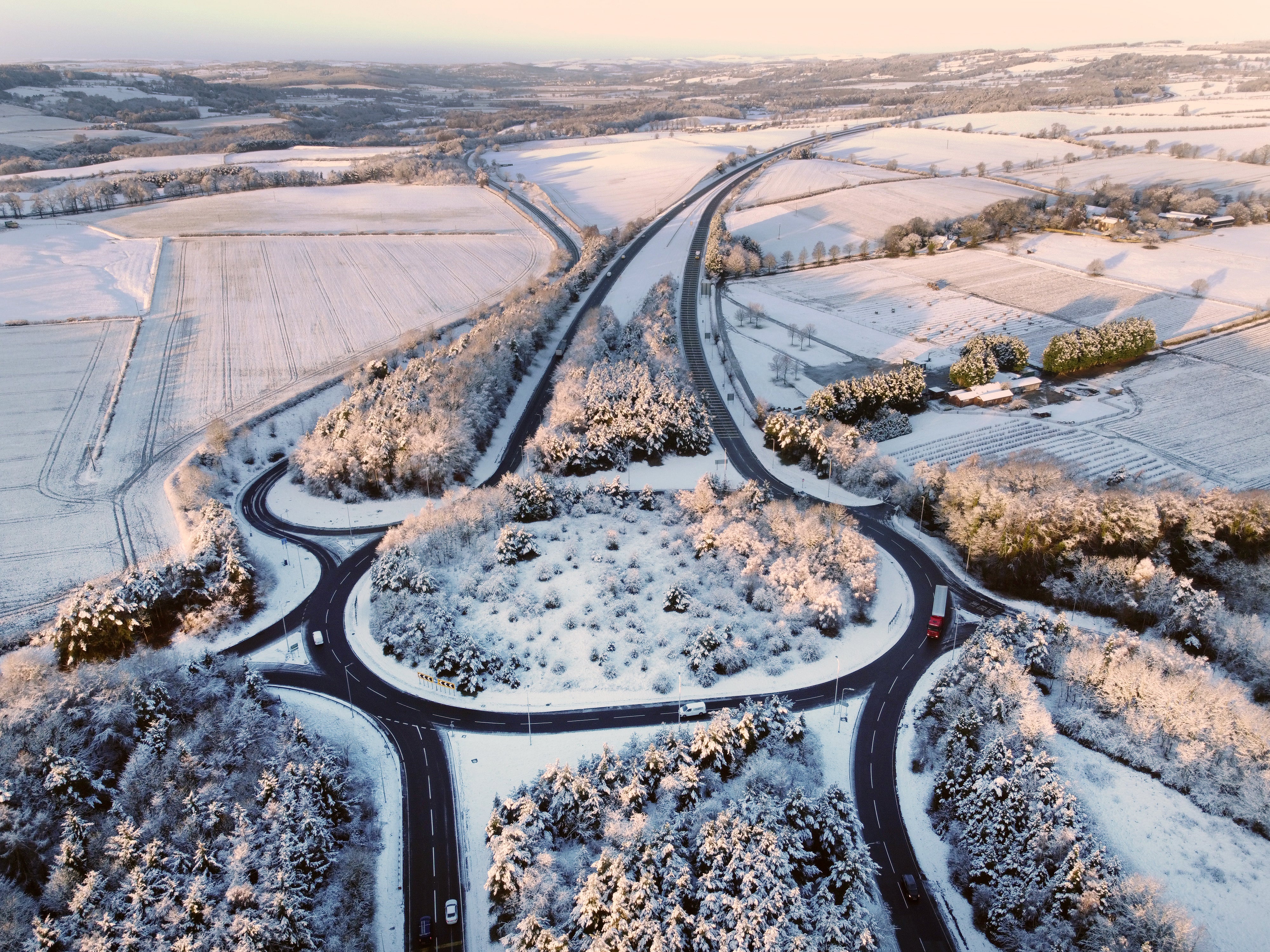 Snow fell in Scotland and parts of northern England on Tuesday, and overnight temperatures from Wednesday into Thursday are expected to dip below freezing during a cold snap.
