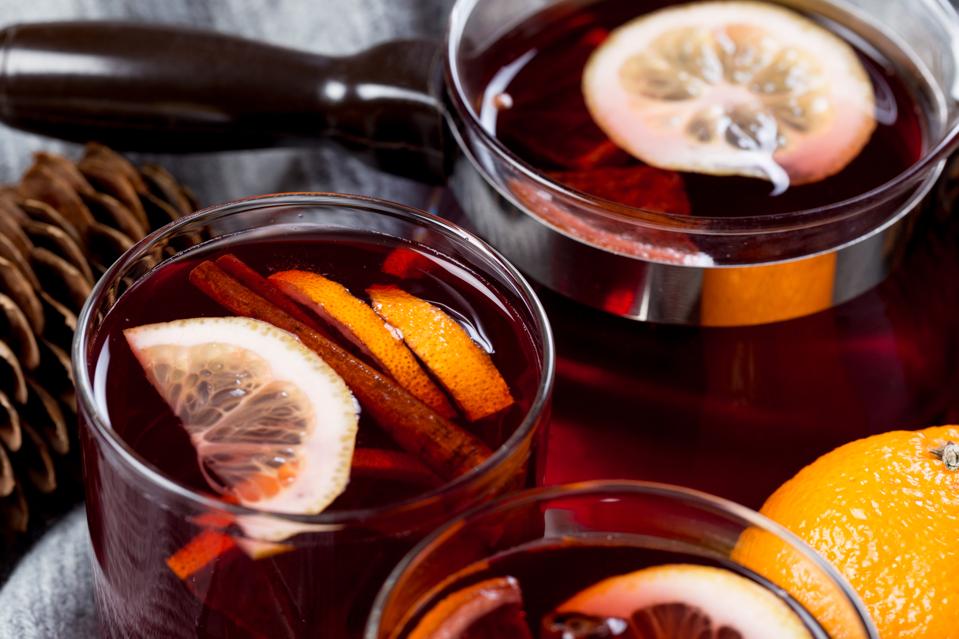 Garnish with cinnamon and orange twist