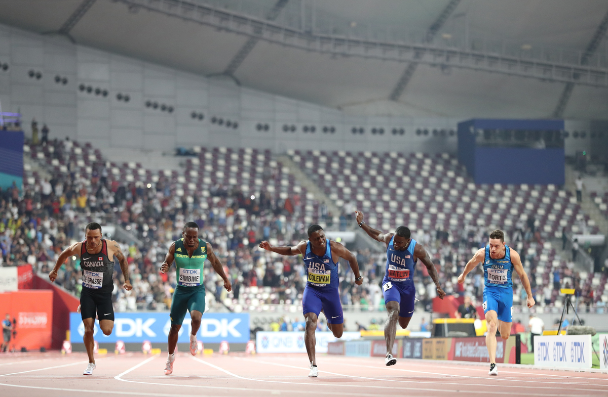DOHA (Reuters) - American Christian Coleman scorched to the 100 metres world championship gold medal on Saturday but the crowning of the world's fastest man could generate no more buzz than the air conditioning in a half-empty Khalifa Stadium.