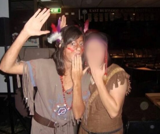 The photos show Chiocci and a friend at a themed party hosted by a local football club, dressed as Native Americans.