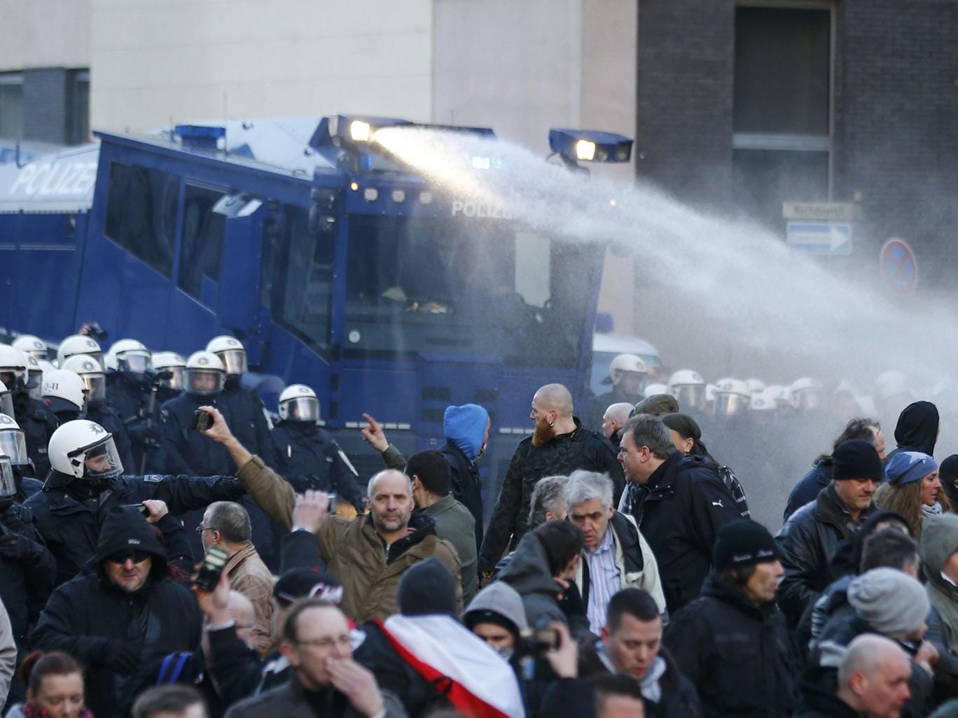 Pegida’s rally was due to start at 2pm on Saturday in a city square and less than two hours later riot police had been sent in to clear the area using a water cannon and pepper spray.