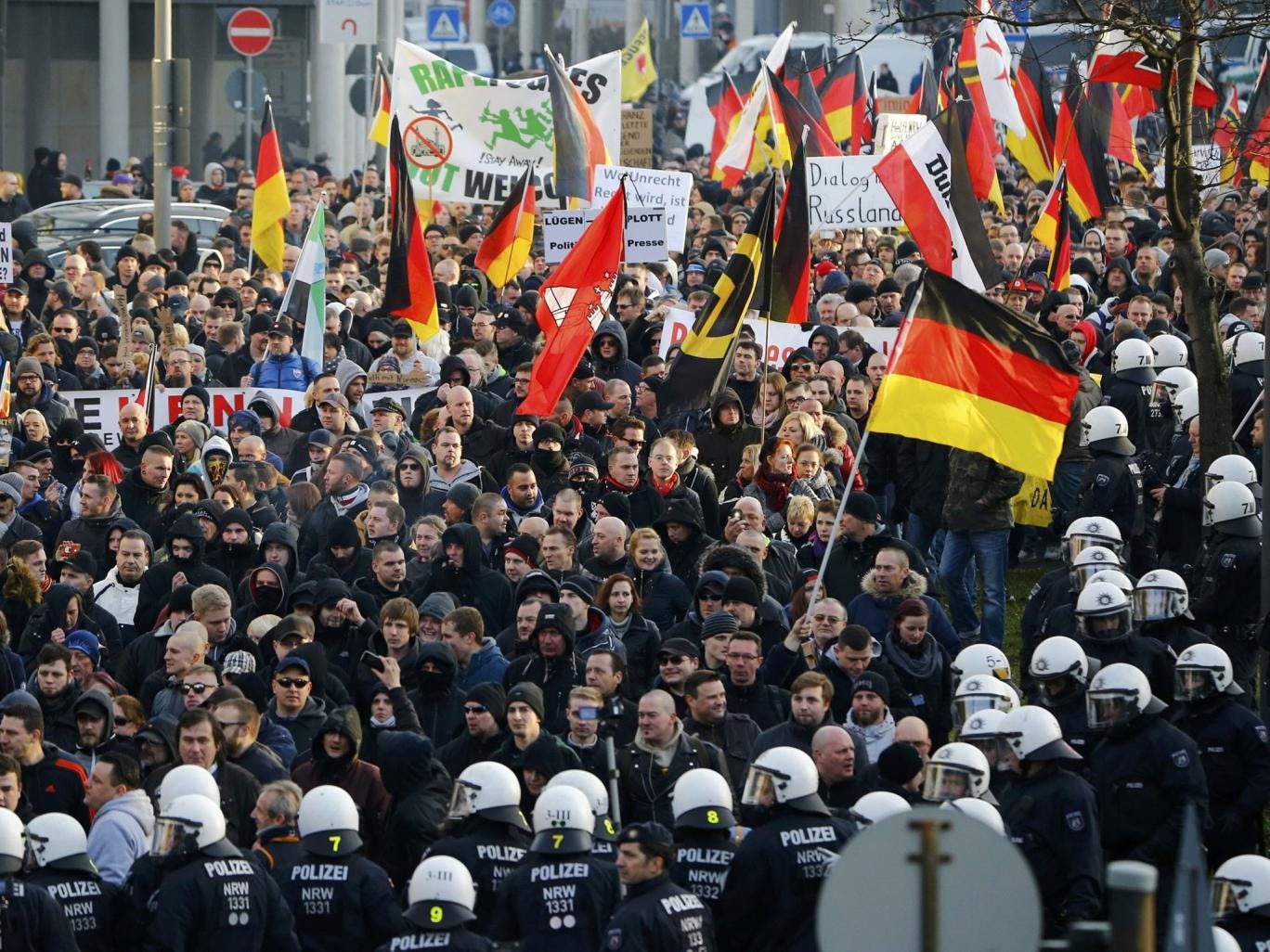 On Saturday, German police used water cannons and pepper spray to push back more than a thousand anti-immigration protestors.
