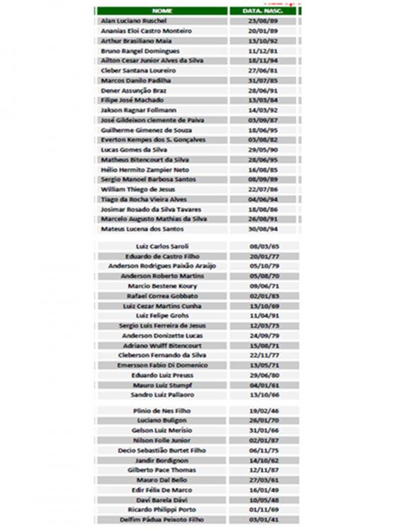 The list is split to show athletes and managers first, then journalists accompanying the sports team, then the crew.
