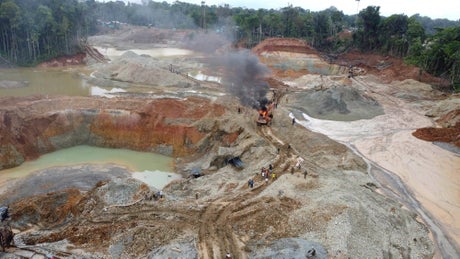 They're quickly subdued with tear gas and the authorities began setting fire to the heavy equipment used to extract gold.