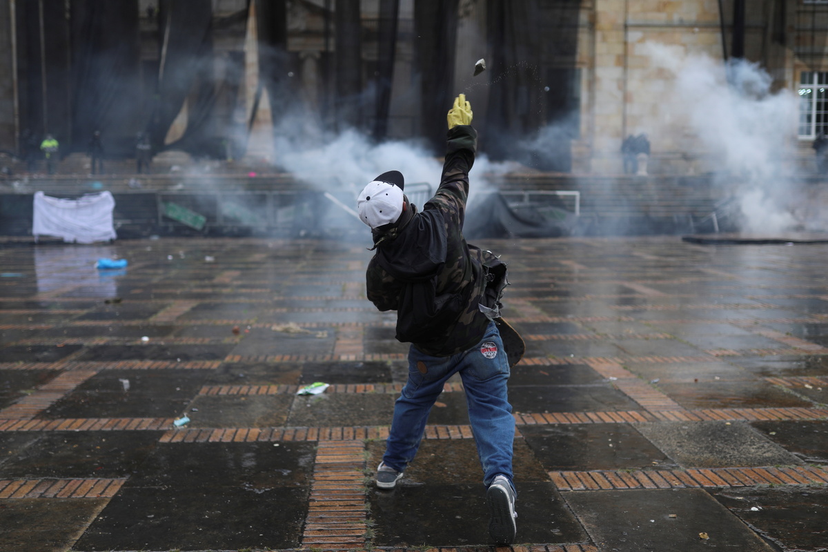 Minutes later, police fired tear gas to deter some demonstrators from attempting to enter Colombia's Congress.