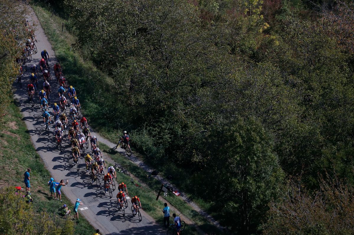 The stage started without defending champion Egan Bernal, who pulled out because of back pains, with his Ineos Grenadiers team saying he would focus on new goals this season.