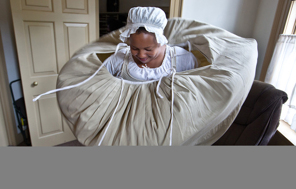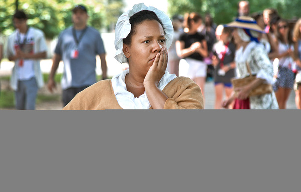 WILLIAMSBURG, Va. _ At 9 a.m., Deirdre Jones enters through the back of the James Anderson House, a white home with red shutters in Colonial Williamsburg. Putting on layers of a petticoat, a long-sleeved dress, jacket and bonnet, she becomes Pheby, an enslaved laundress at the Governor's Palace for Lord Dunmore.