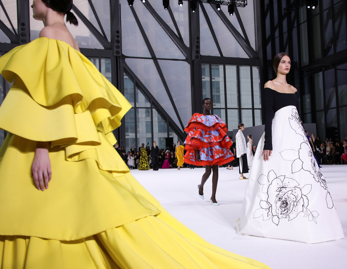 Models present creations from the Carolina Herrera Fall 2020 collection during New York Fashion Week in the Manhattan borough of New York, U.S., February 10, 2020. REUTERS/Caitlin Ochs