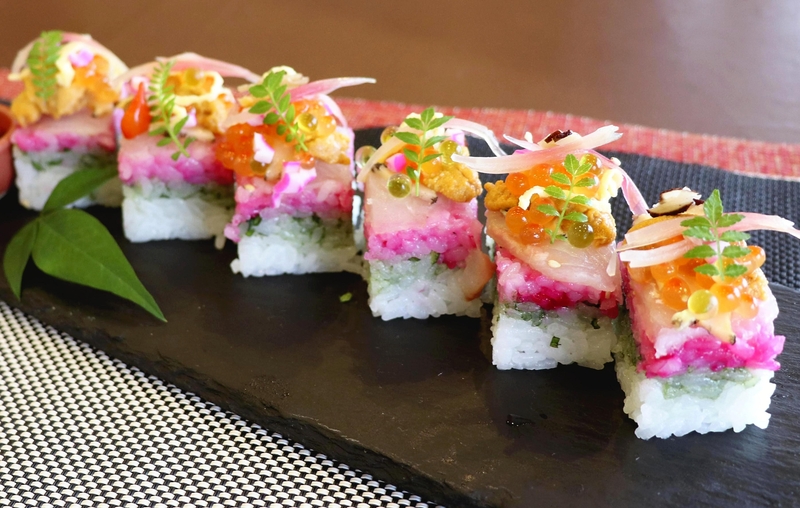 TATEYAMA, Chiba -- Hotel chefs in Tateyama, Chiba Prefecture, have developed colorful sushi inspired by their surroundings: geological layers raised up by historic earthquakes.