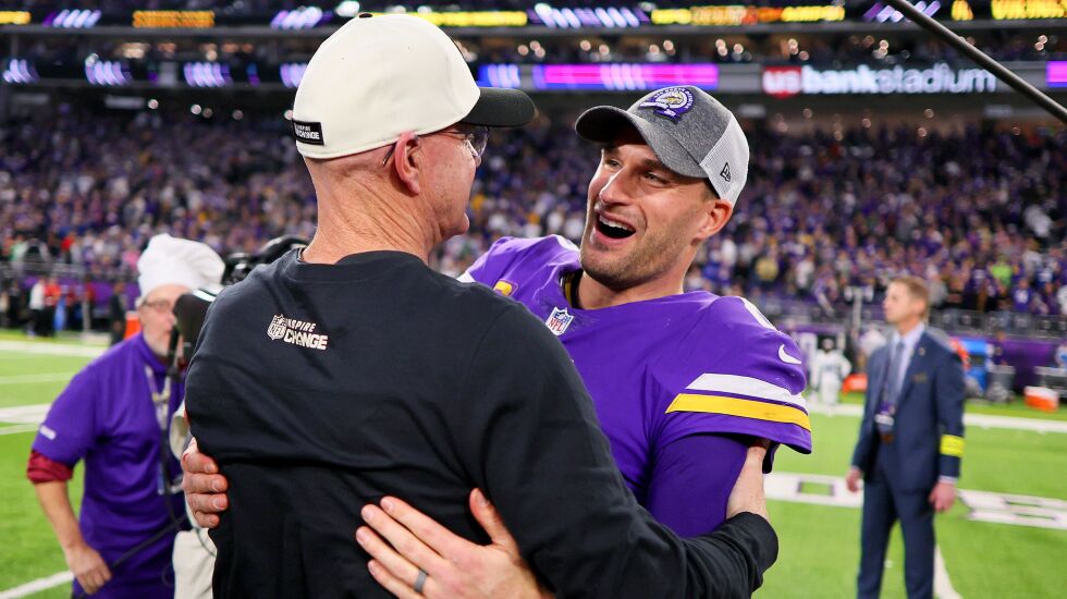 The Vikings took this rally all the way to their second possession of overtime. Cousins hit K.J. Osborn — who caught the first score and had a career-high 157 yards — for 15 yards. He found Adam Thielen — who had the second of three fourth-quarter touchdown passes — for 21 yards. Then he threw to Justin Jefferson for 13 yards to move into range.