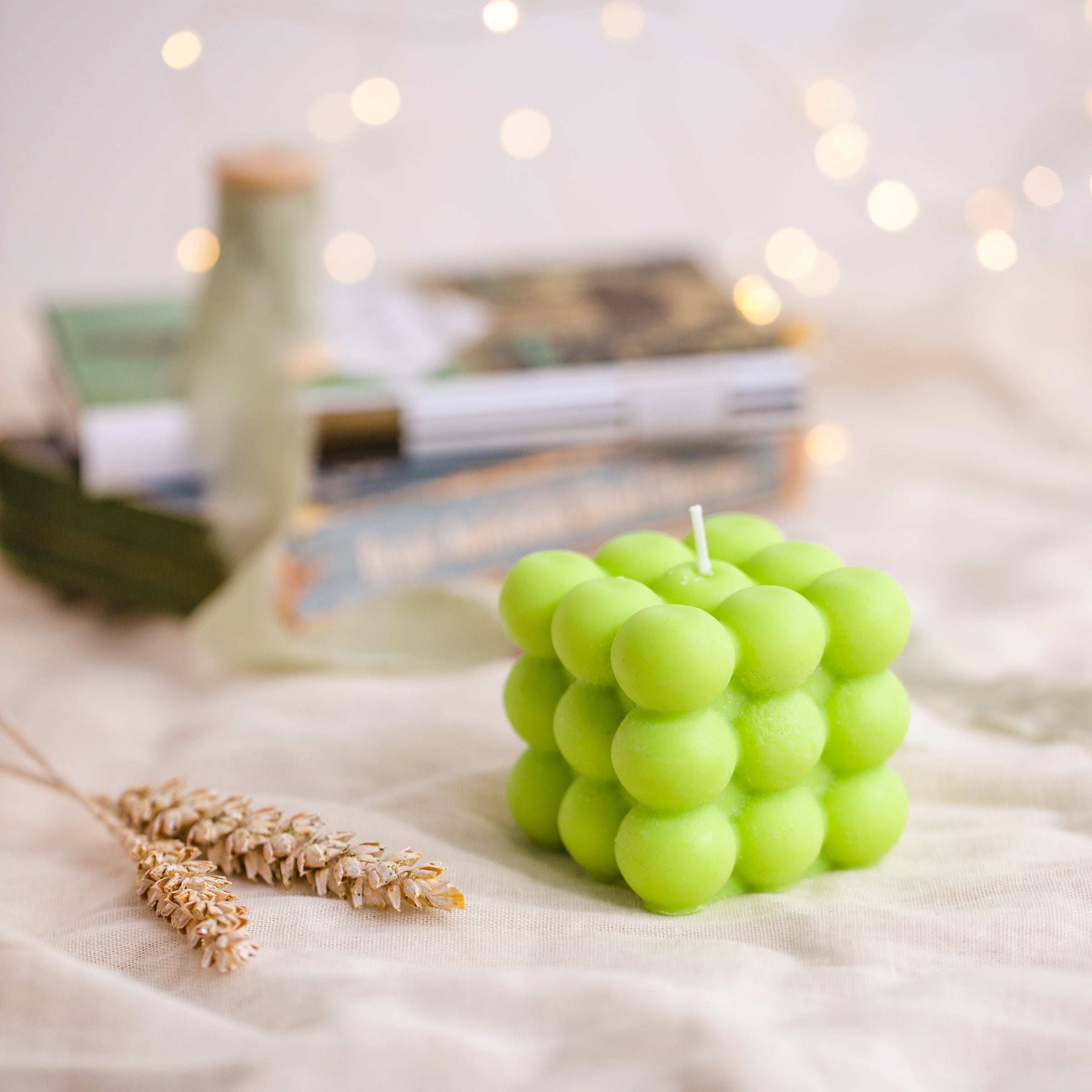 OutofLineHome Bubble 100% Soy/Vegan Decorative Pillar Candle Green, £8.99, Etsy