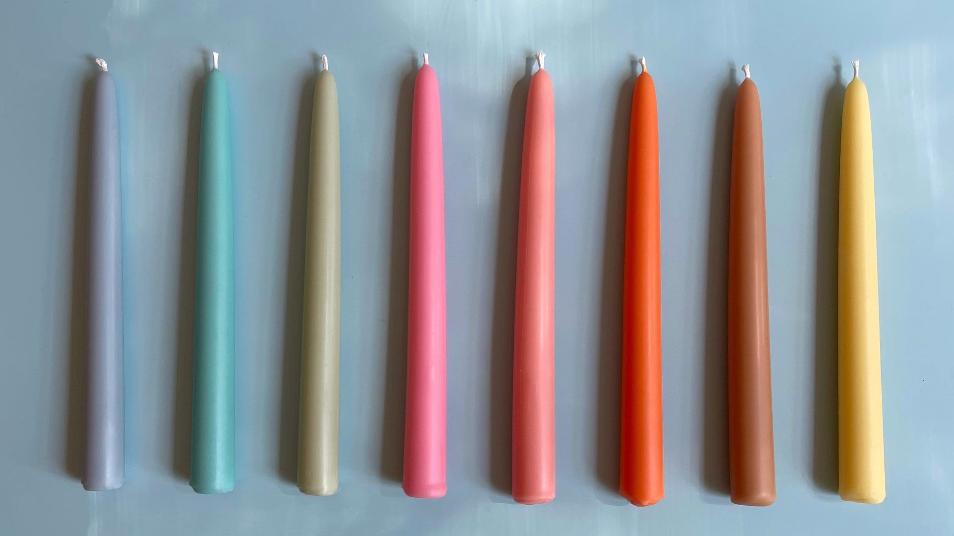 Fairholme Studio Bright Rainbow Taper Candles Set of Eight, £35, Liberty London