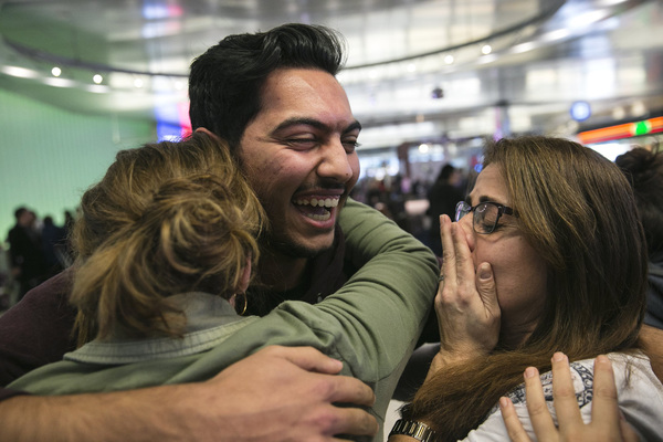 Screams and tears and hugs, cheers from strangers, cameras flashing, reporters asking questions. He'd made it through, no questions asked. The months of vetting he'd gone through to get his American visa apparently meant something again.