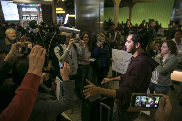 Early Saturday morning it looked as if the most recent restraining order on the travel ban was being honored at most U.S. airports. Abdullah decided to fly in on the return ticket to LAX he'd booked almost a year ago.