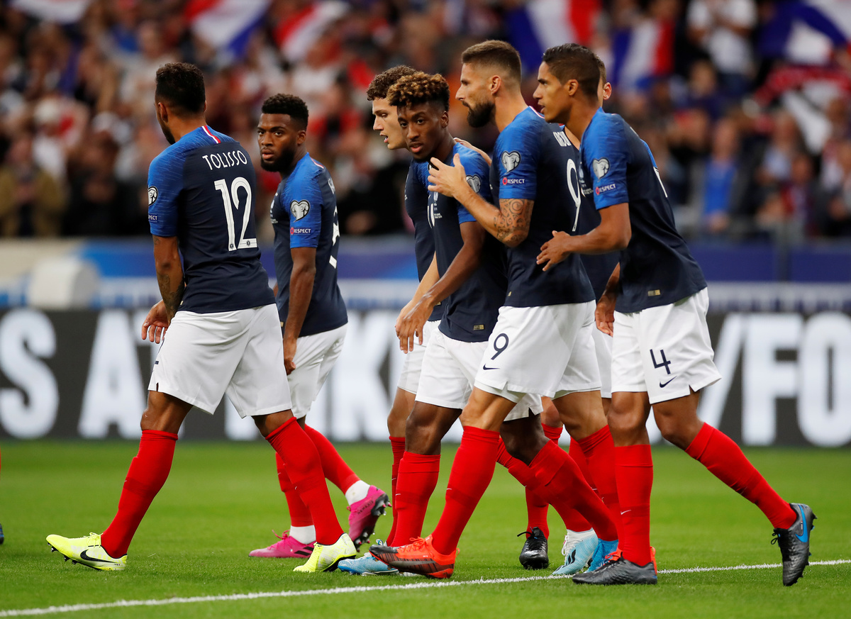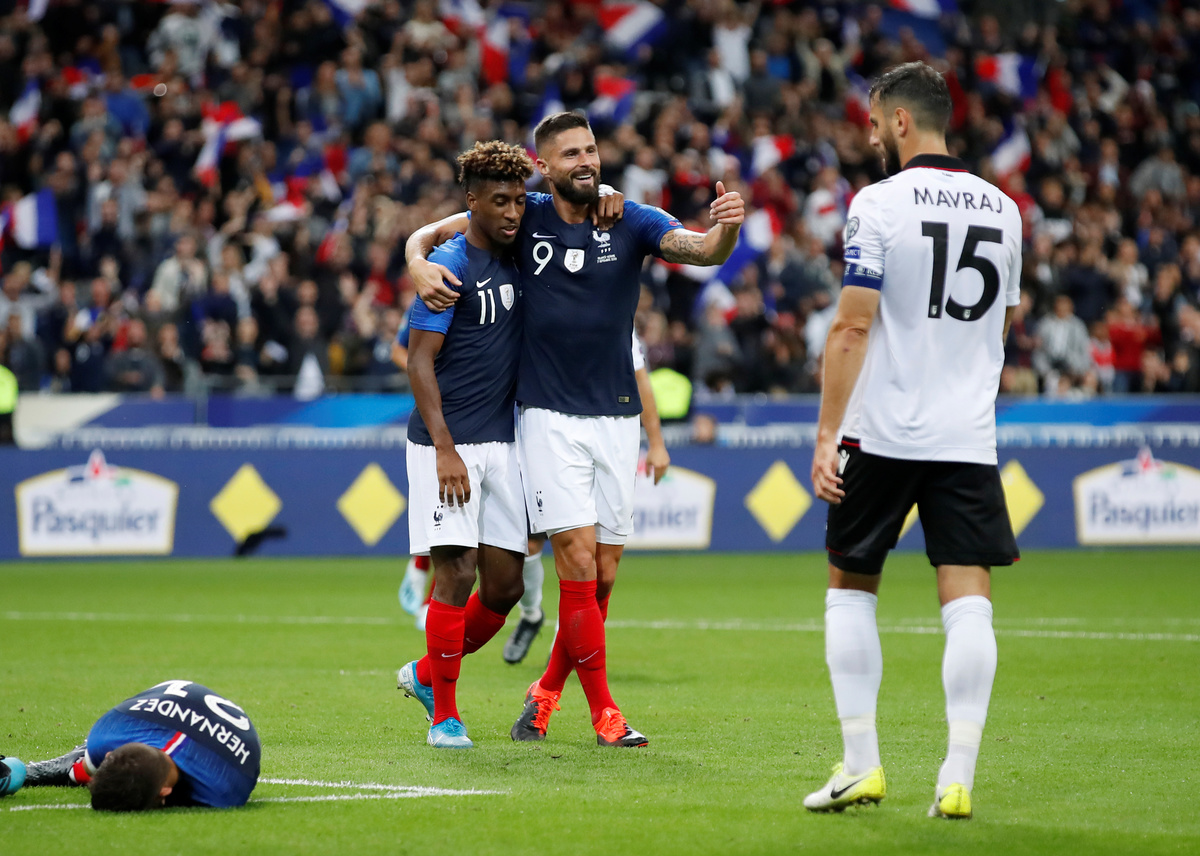 PARIS (Reuters) - France stayed in command of their Euro 2020 qualifying group as Kingsley Coman's double and goals from Olivier Giroud and debutant Jonathan Ikone earned them a 4-1 home win against Albania on Saturday.