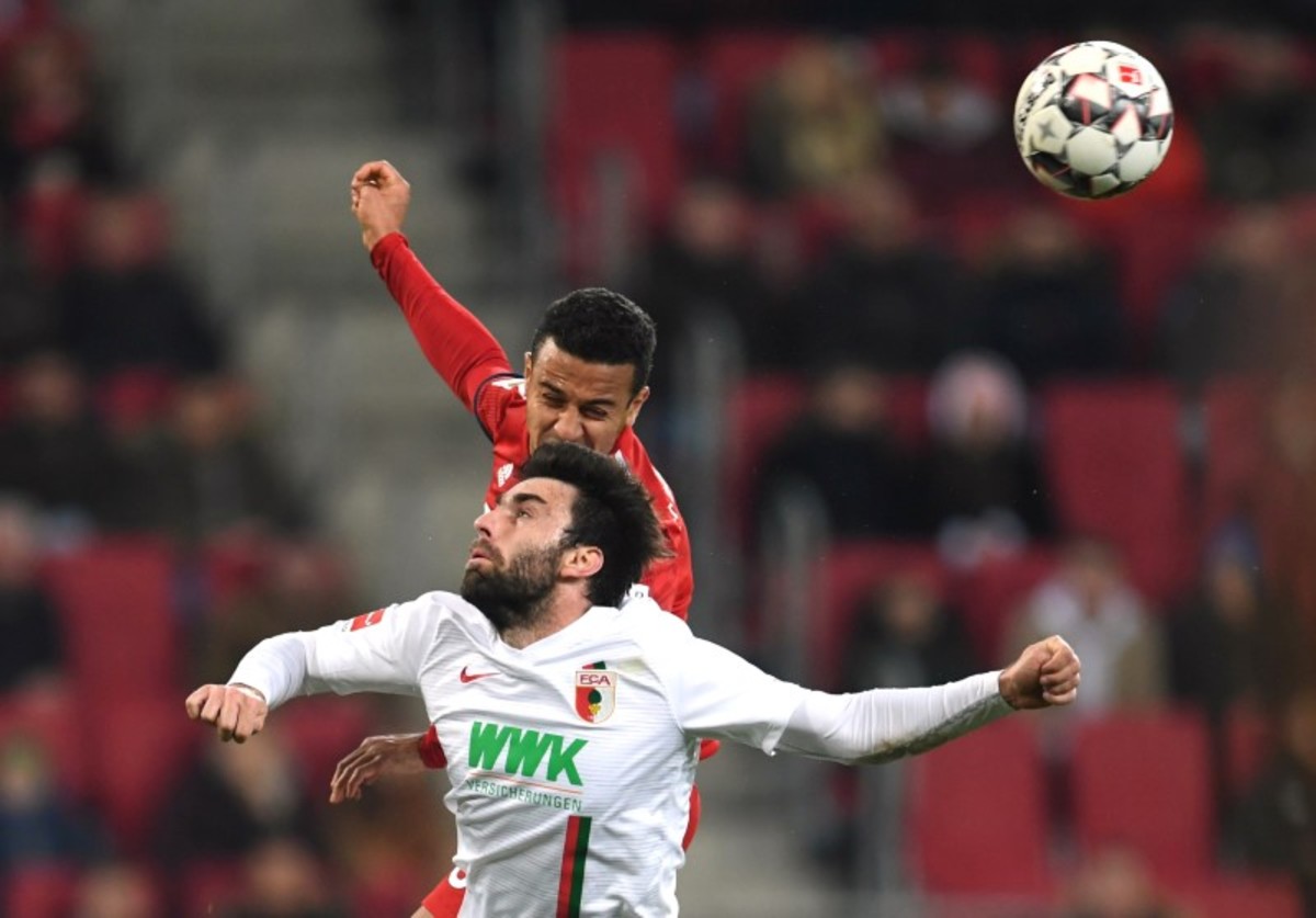 Soccer Football - Bundesliga - FC Augsburg v Bayern Munich - WWK Arena, Augsburg, Germany - February 15, 2019 Bayern Munich's Thiago in action with Augsburg's Jan Moravek REUTERS/Andreas Gebert DFL regulations prohibit any use of photographs as image sequences and/or quasi-video