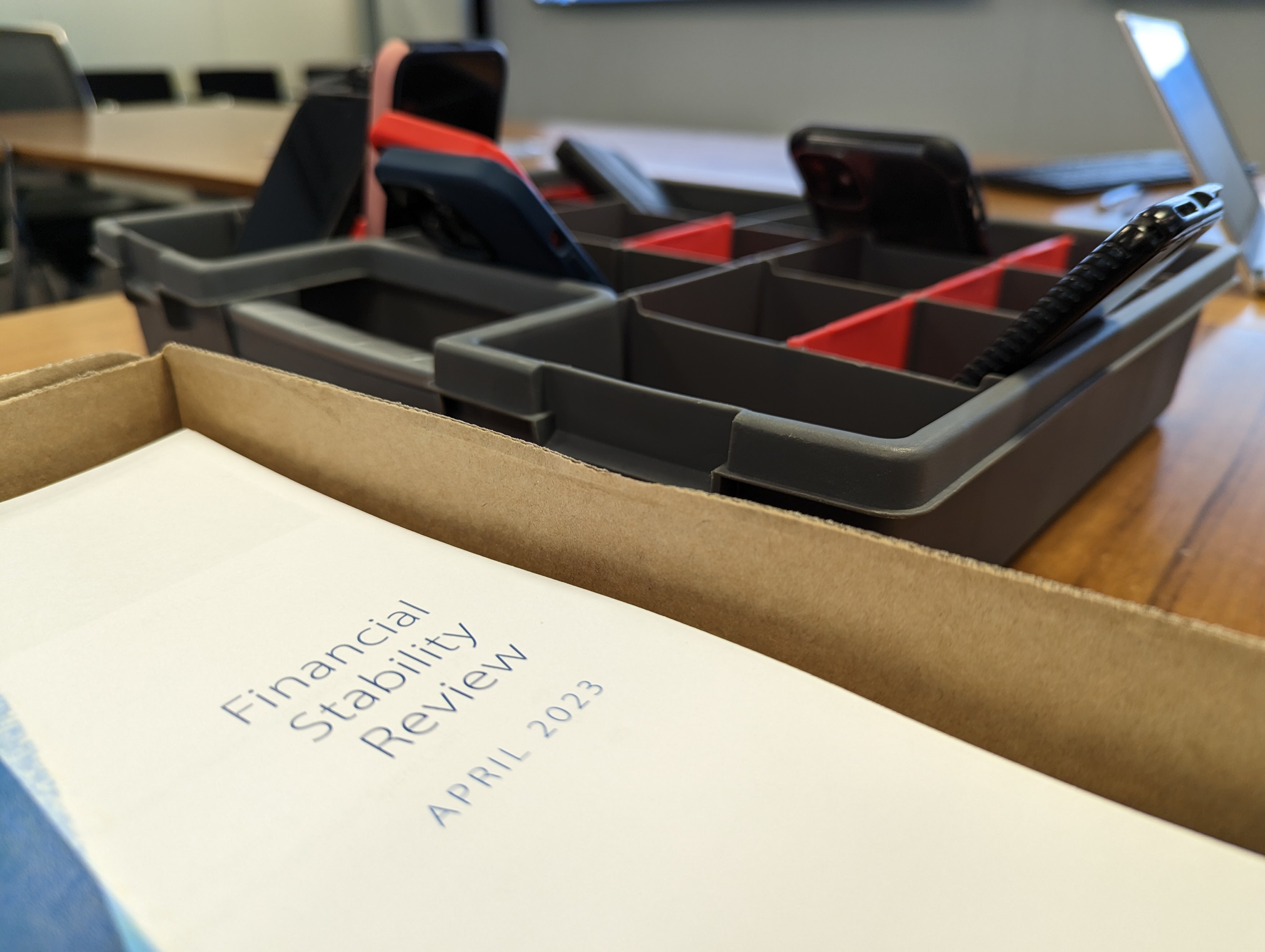 Sometimes we also get a USB with an electronic version — which has to be returned at the end of the lock-up, because it's not like the RBA has limitless money.