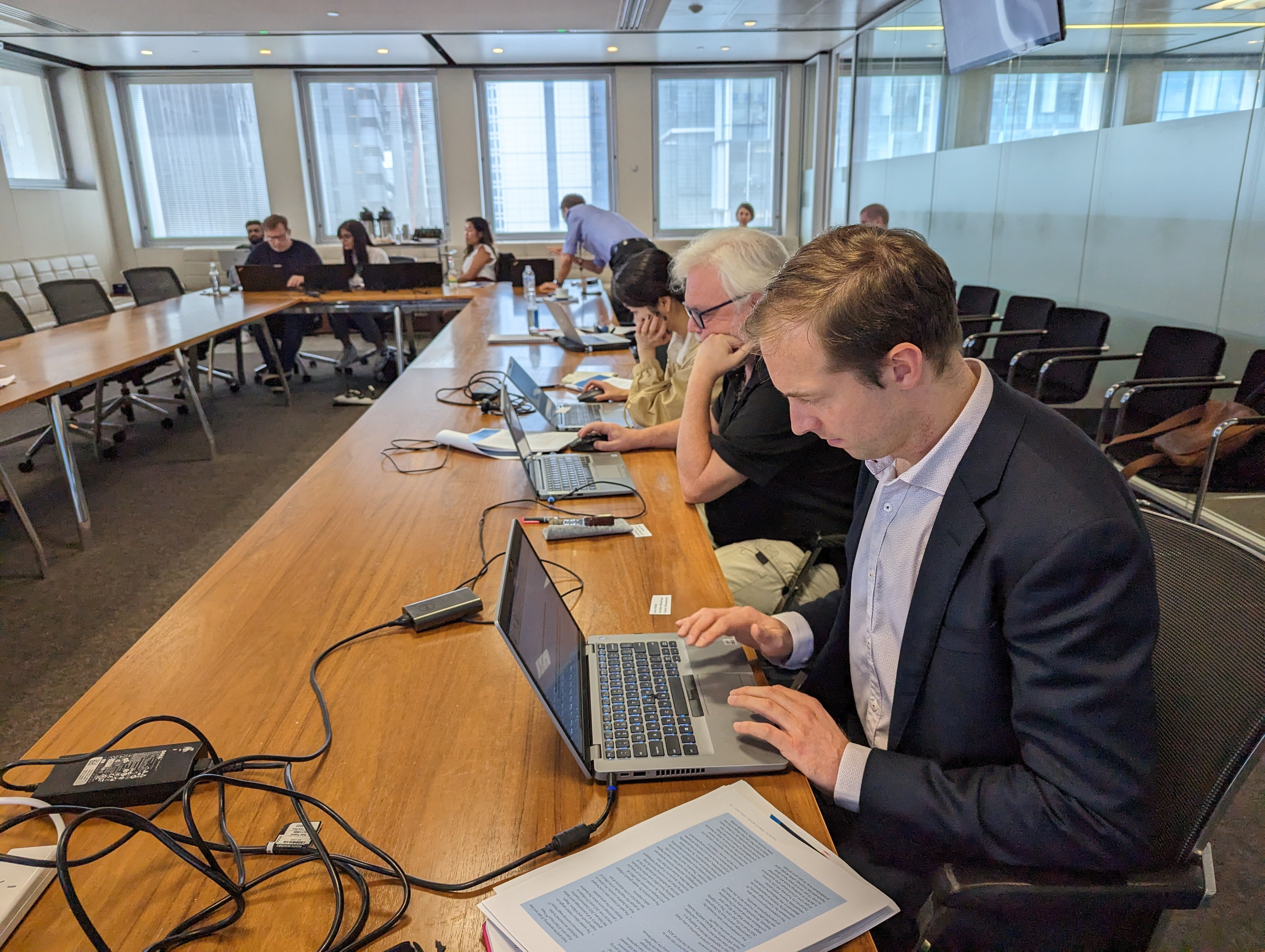 Unfortunately, with the briefing at the beginning of the lock-up this time, none of us had yet had a chance to read anything that we might want clarified although, as you can see below, many of us were already reading and typing while listening.