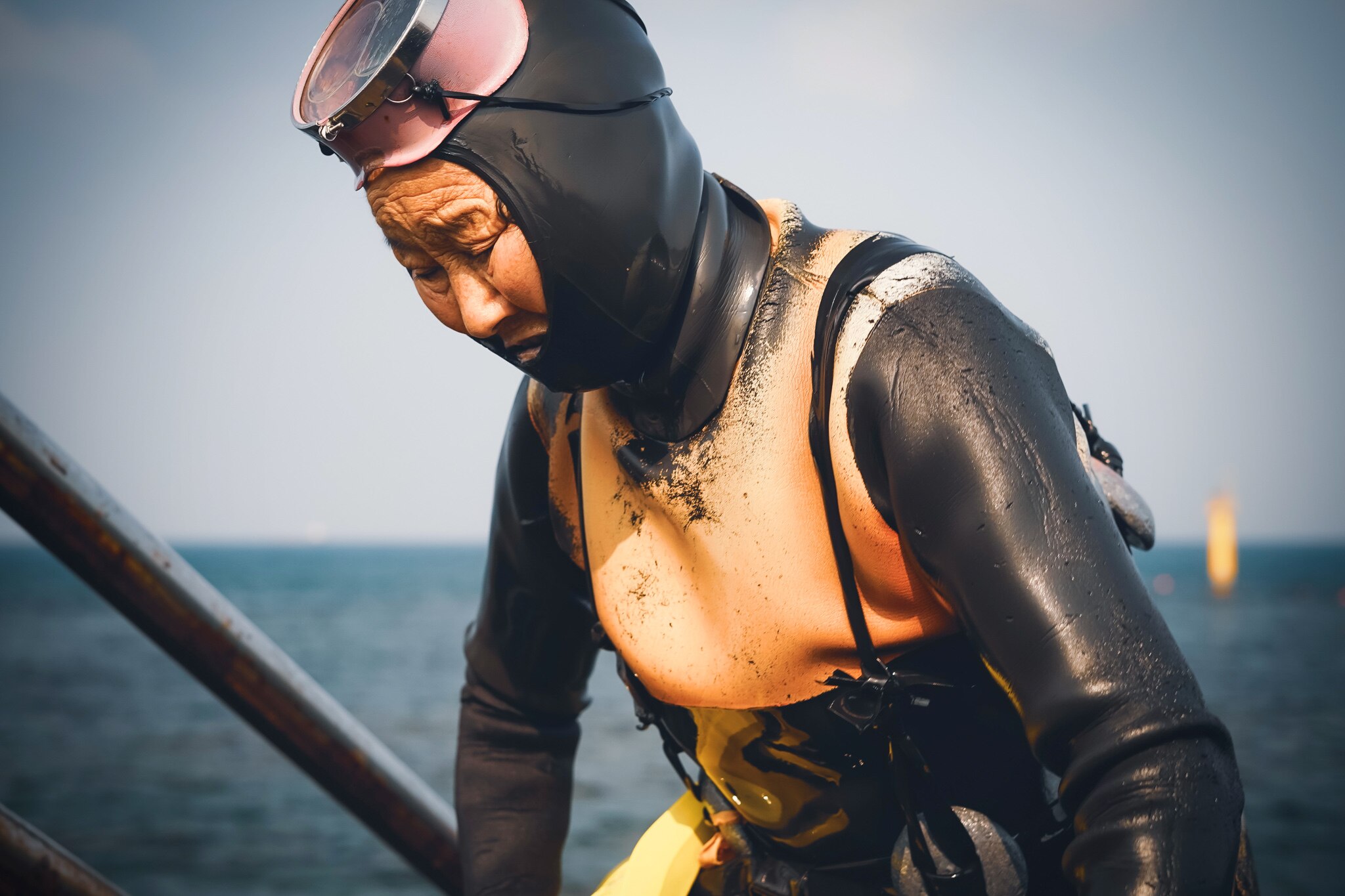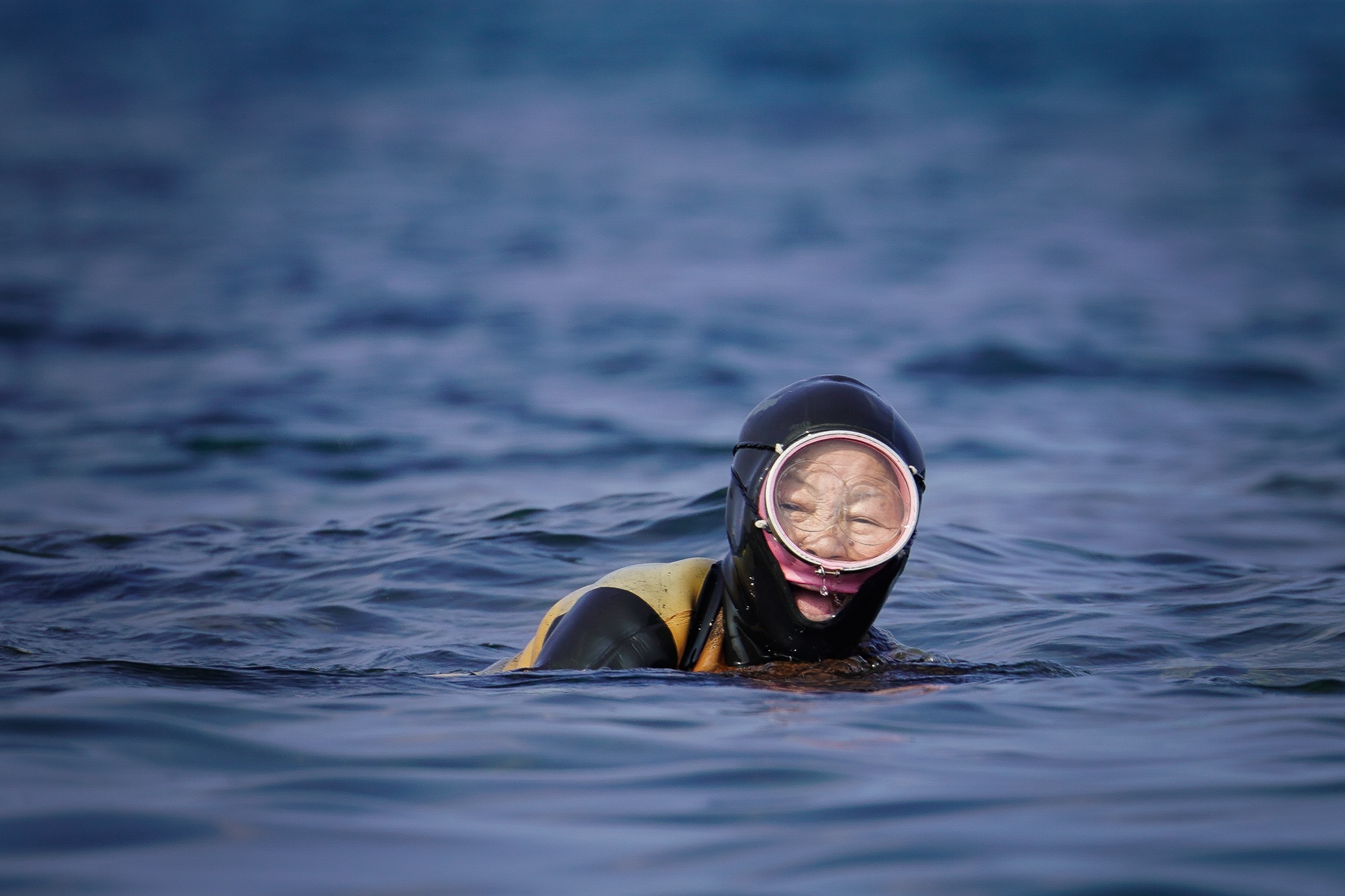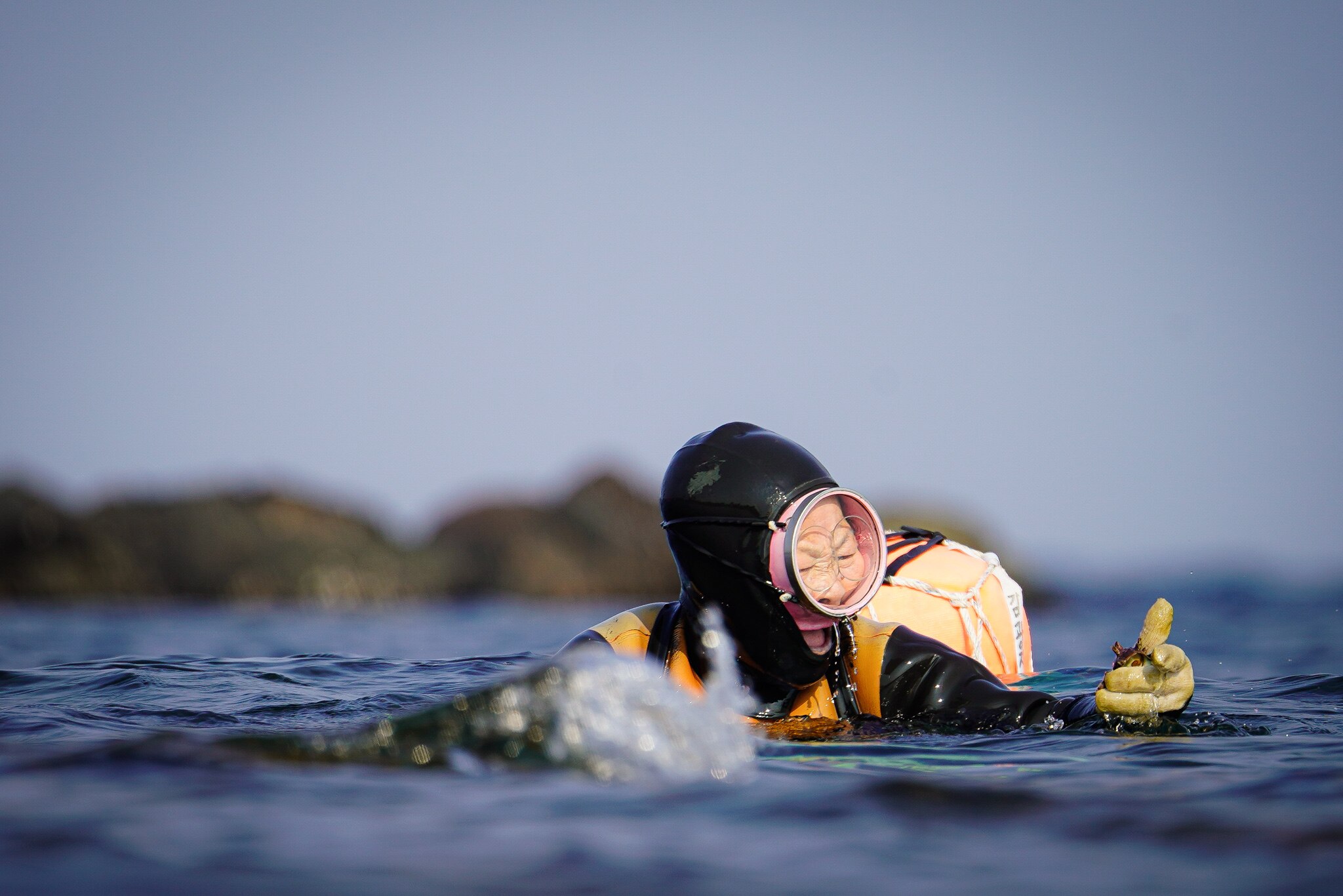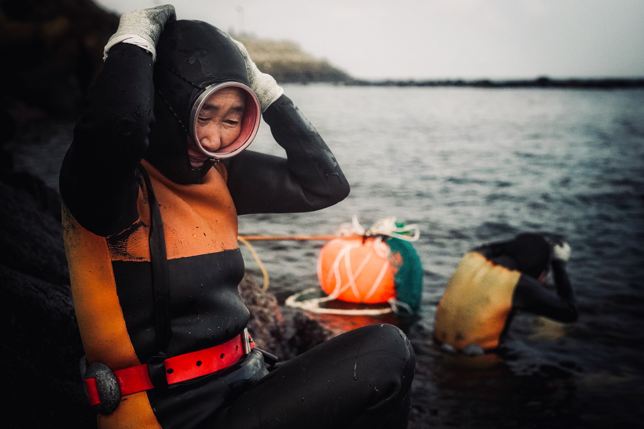 Haenyeo take to the water at 8am, having grown accustomed to the bracing cold of the ocean.
