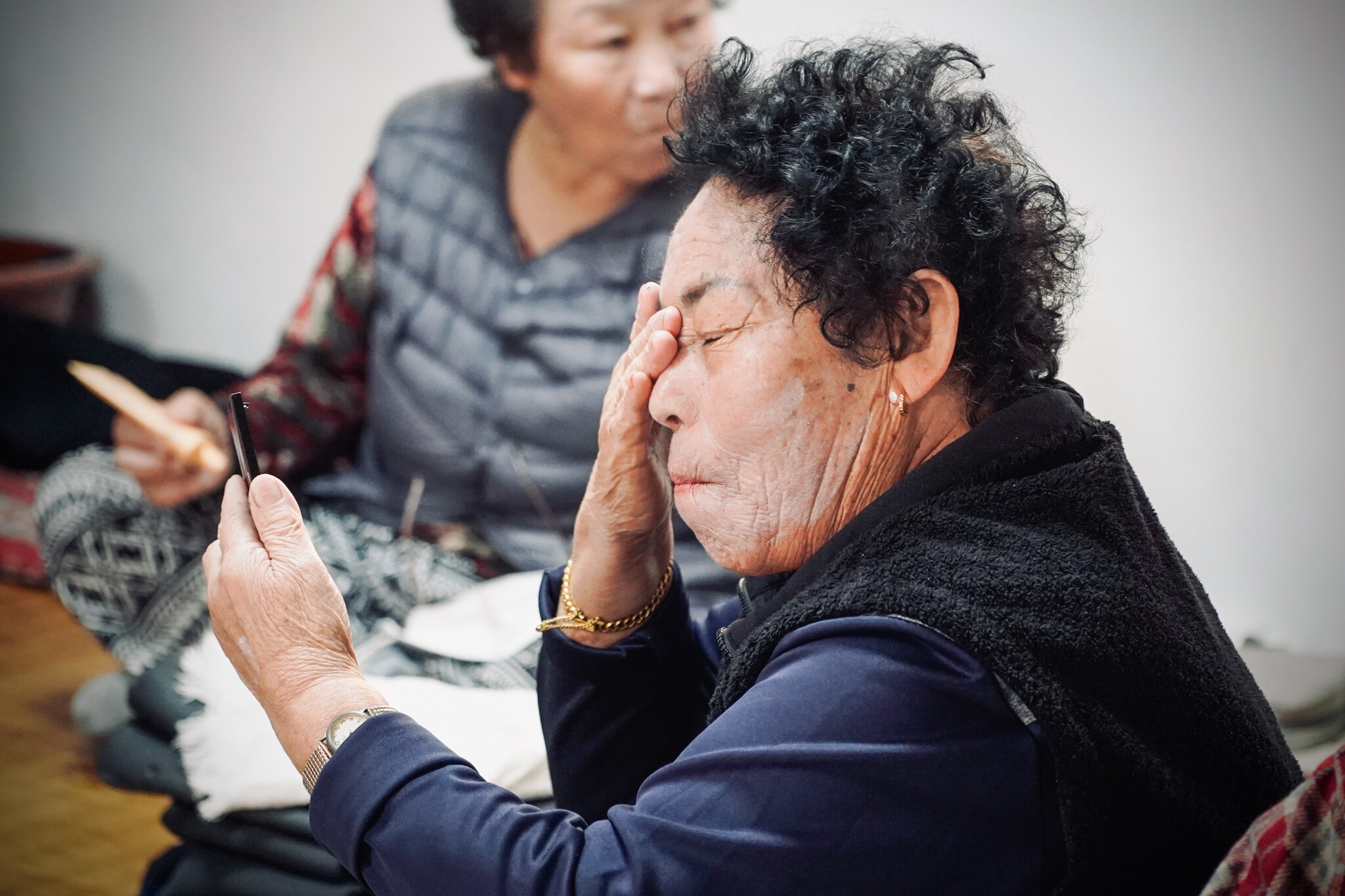 The older women rotate leadership among themselves. The leader might occupy the best seat on the Korean-style heated floor as they get ready, but the decision making seems democratic.