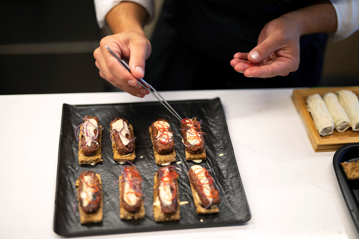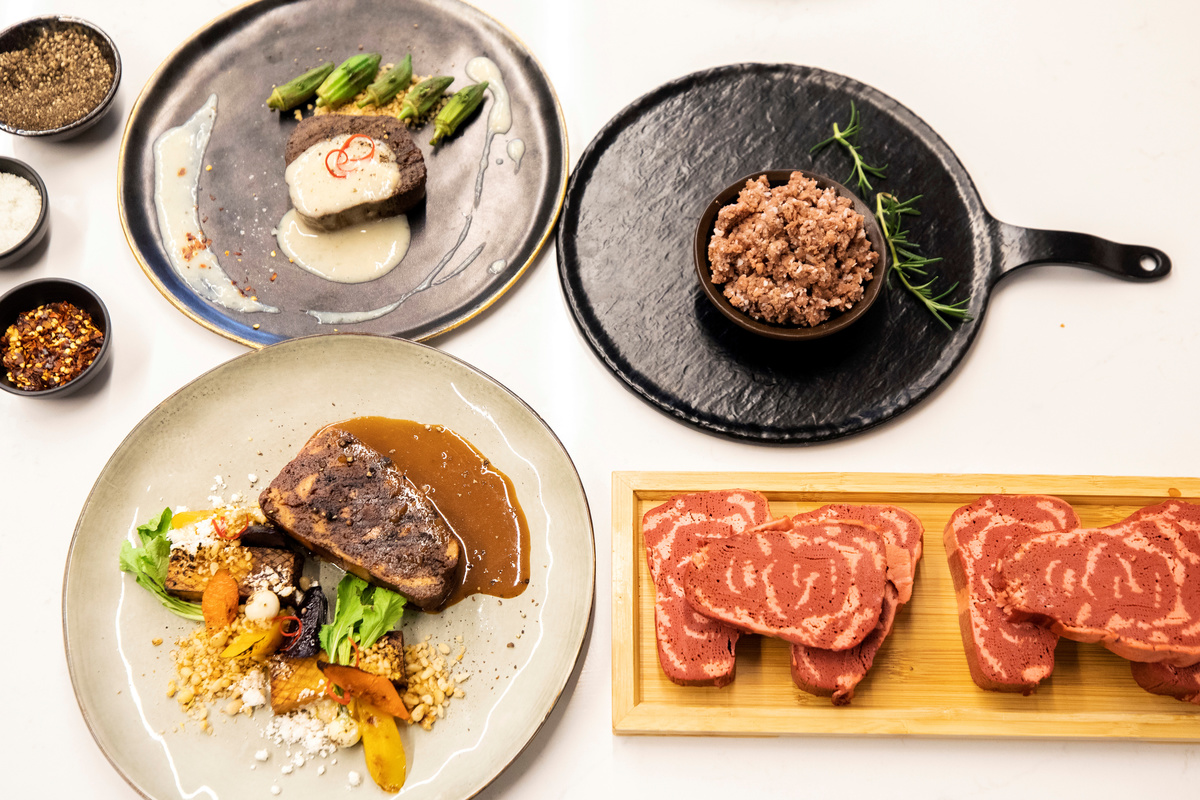 Dishes consisting of 3D printed plant-based meat mimicking real beef and produced by Israeli start-up Redefine Meat are seen during a demonstration for Reuters at their facility in Rehovot, Israel June 29, 2020. REUTERS/Amir Cohen